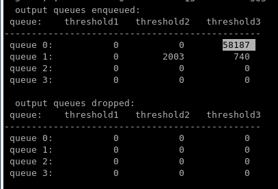 We see here the majority of my enqueued packets were in queue 1 threshold 3. There were a few packets in queue 2 threshold 2 and 3, which I assume were something with the control-plane of iSCSI but am not sure (nor do I care to check).