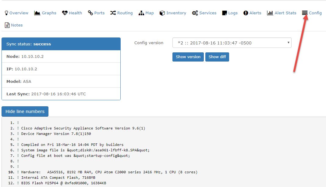 As of right now you should see a “Config” tab per device, and a config saved for the devices we added to router.db.